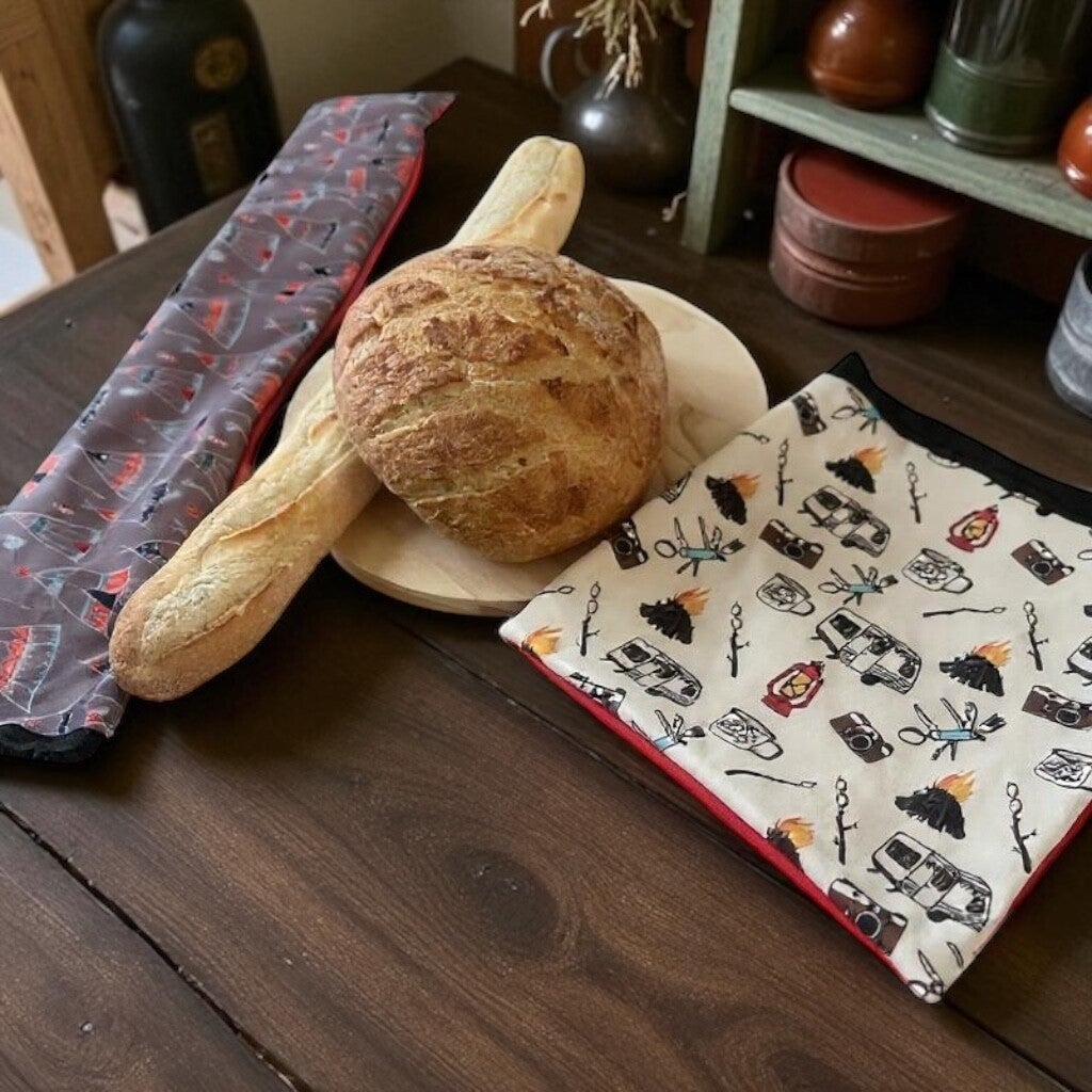 Sac à pain réutllisable, idéal pour conserver le pain plus longtemps tout en réduisant les emballages jetables. Fabriqué à la main avec soins, il laisse respirer le pain et s'intègre naturellement à un cuixine durable.